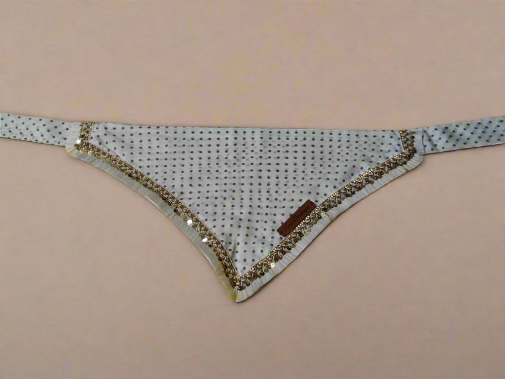 Add a timeless touch of charm to your furry friend’s look with this White Muslin Dog Bandana, adorned with delicate green polka dots and finished with a beautiful lace trim. Whether it’s for a casual stroll or a special event, this bandana is a perfect blend of comfort and sophistication.